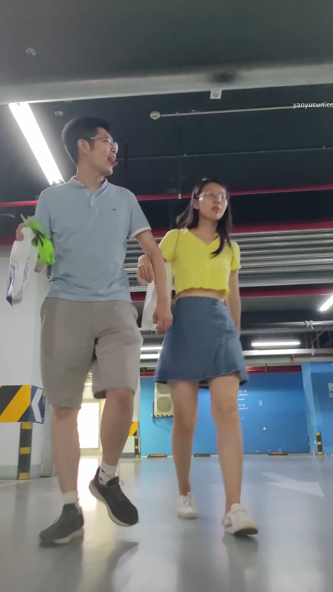 XM298牛仔短裙戴眼镜的骚货和男朋友逛街,白色窄内 ...