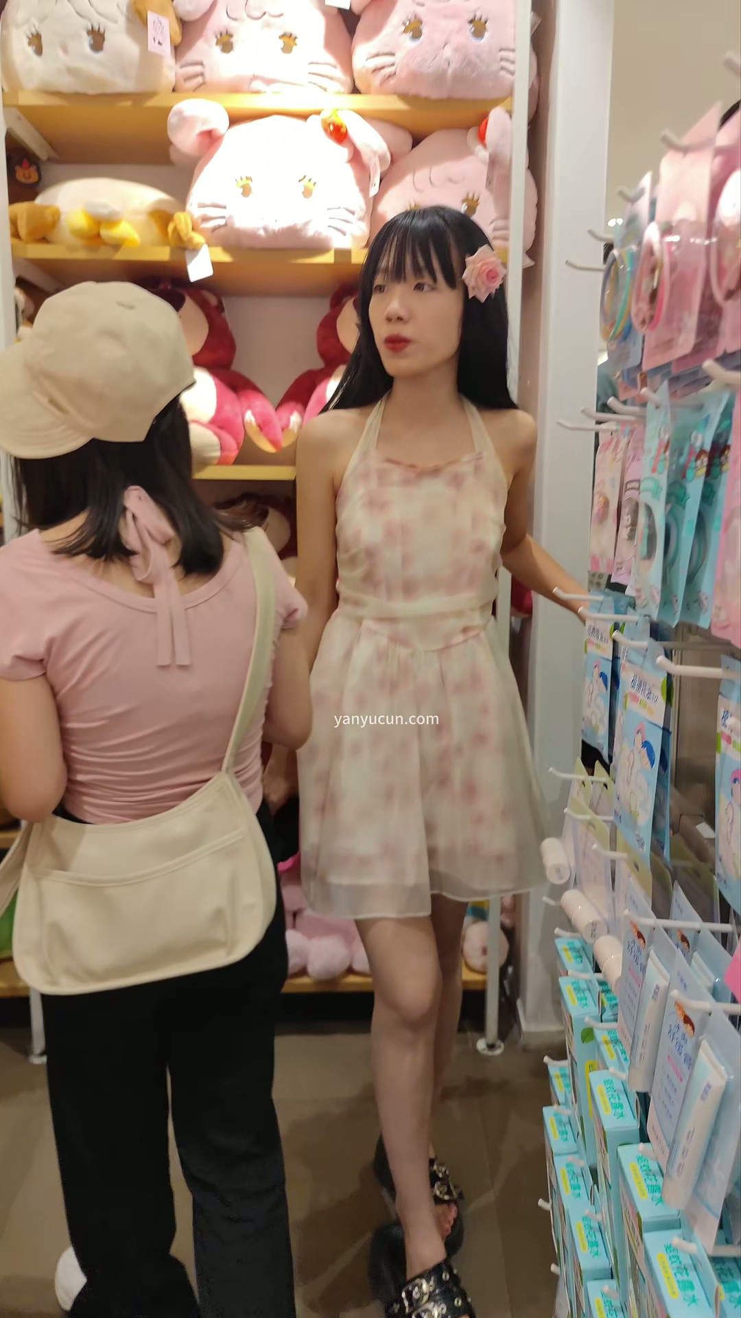 XM310粉色蕾丝连衣裙小姐姐和男朋友出来旅游,白色内内 ...