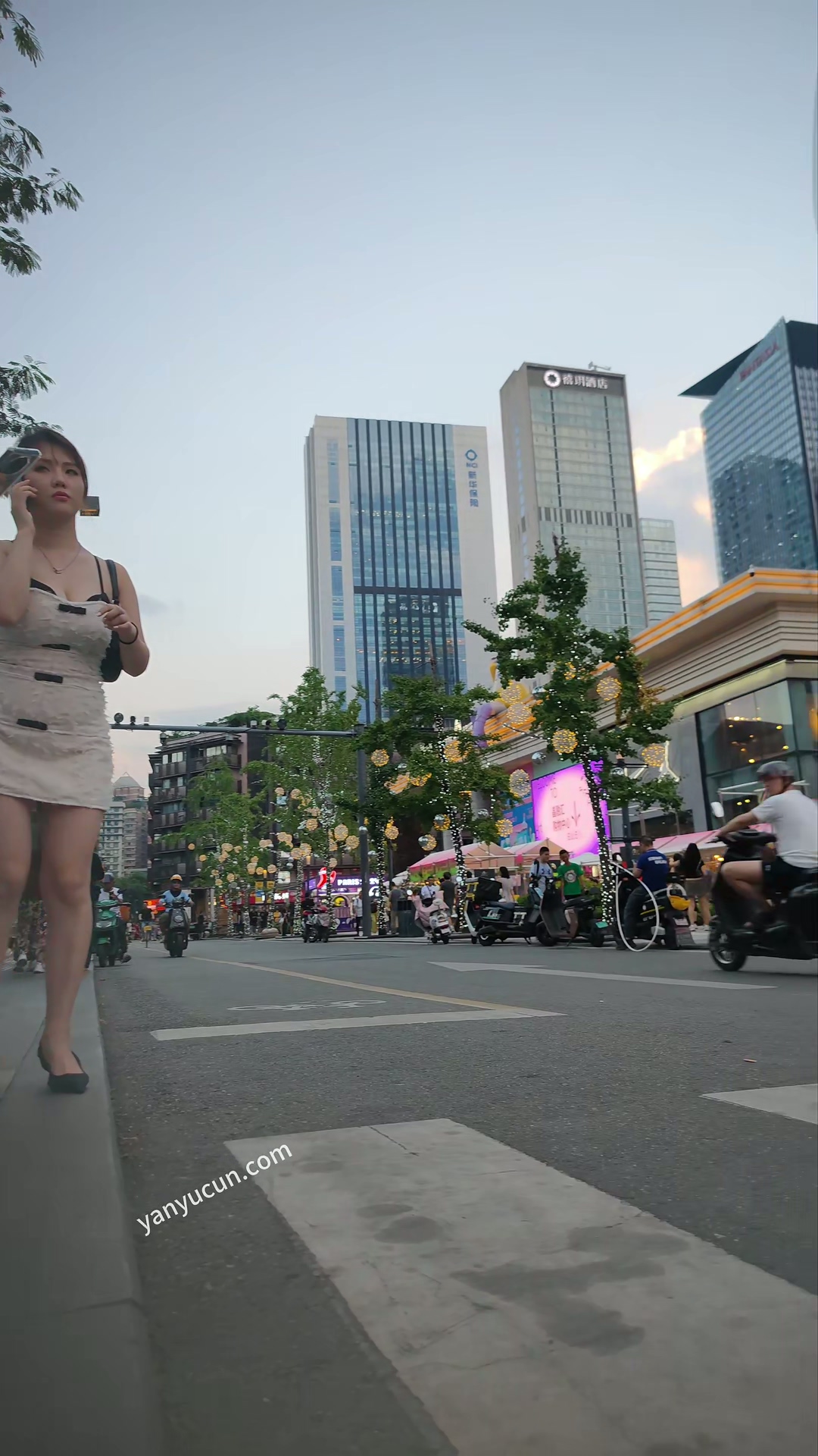 XM385白色连衣裙美女和男朋友路边等车,抄底白色窄内 ...