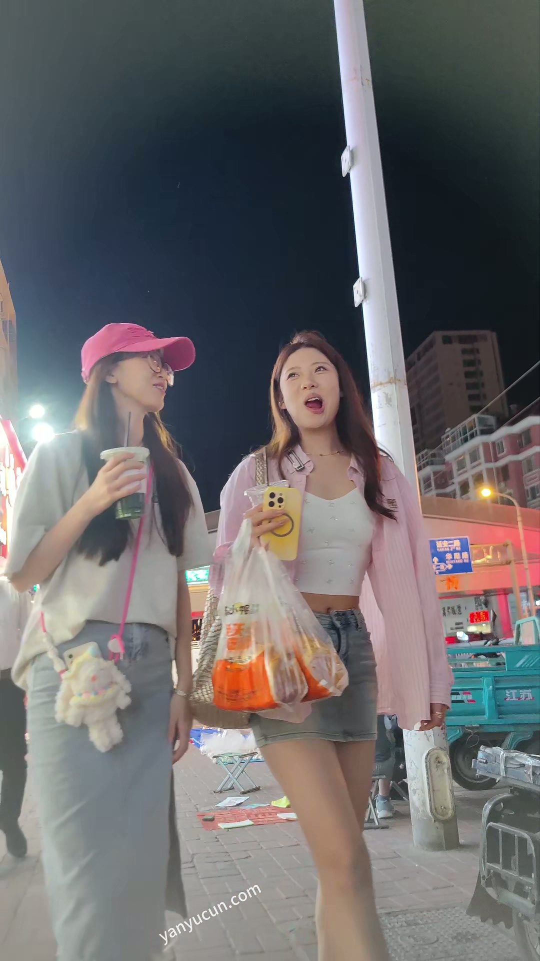 XM393蓝色牛仔短裙极品身材美女和闺蜜逛夜市,白色内内 ...