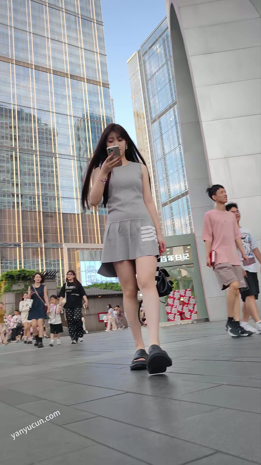 XM394灰色连衣裙小姐姐一个人逛街,白色内内漏毛 ...