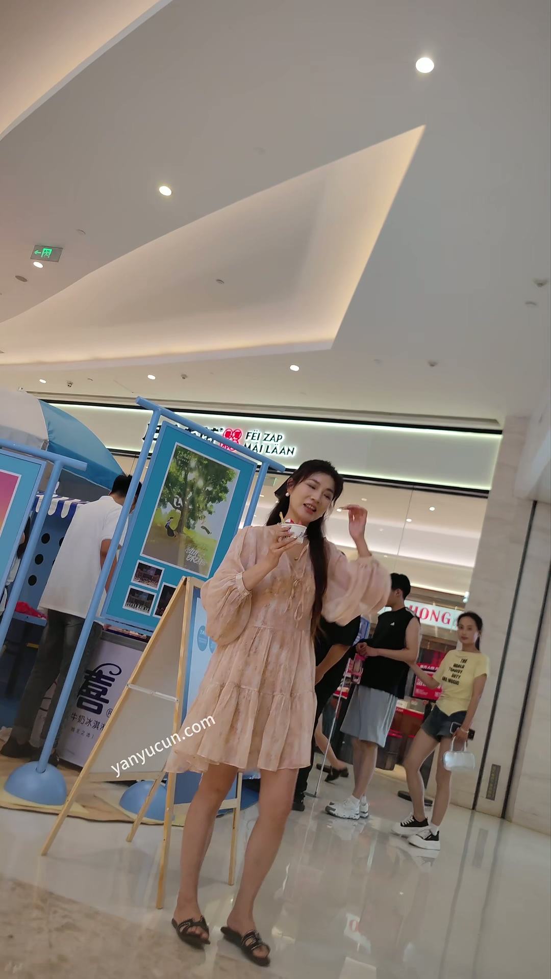XM397粉色连衣裙美女商场搞活动打卡拍照,白色窄内屁股 ...