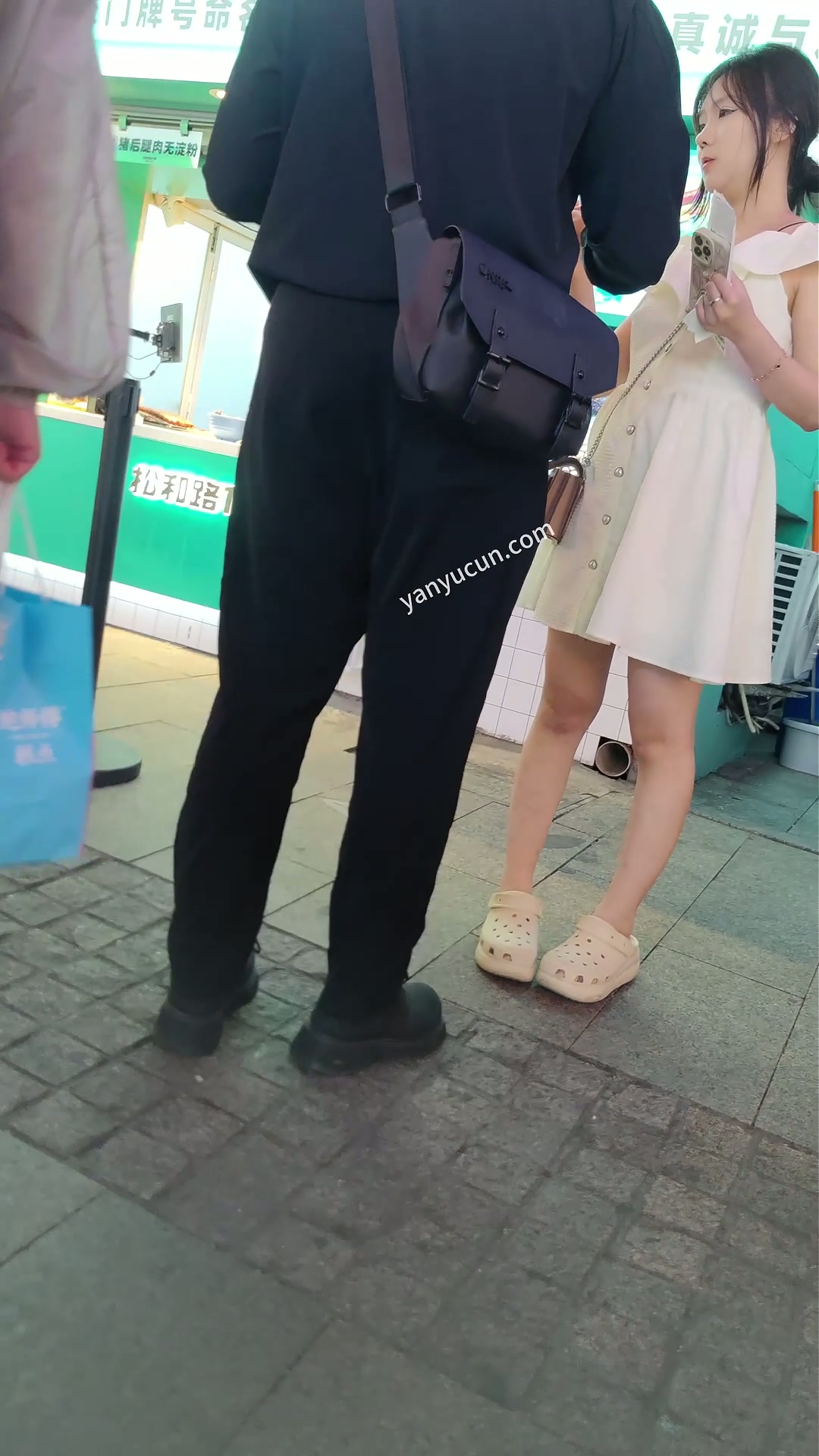 XM412白色连衣裙清纯小姐姐和男朋友逛夜市,白色半透明 ...