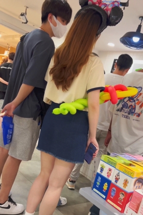 【YZWCD】YC686牛仔短裙学生妹逛商场!彩虹窄N弯腰!