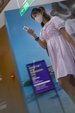 kc992逛商场的连衣短裙小姐姐,性感白丝小腿袜黄N