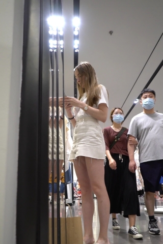 (BC-AA-082)花裙肉丝小姐姐逛商场..持续弯腰挑选..翘臀条纹内