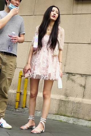 (BC-B-053)吊带低胸裙小姐姐上楼梯..岔开双腿窄内紧裹肉臀