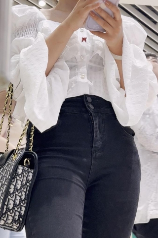 (BC-AA-084)很有气质的白裙美女逛商场..木耳边半透明蕾丝内