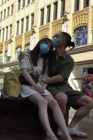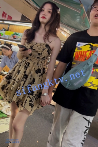 trump704吊带裙靓女和男友逛街。长相甜美黑色骚内气质好