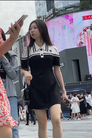 trump742时尚短裙美女逛街买衣服。黑色丝袜白色内内性感