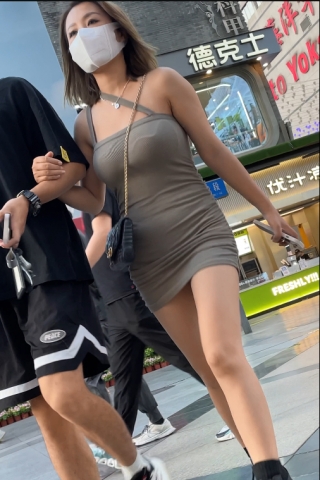 (BC-B-069)小吃街抄底吊带裙长靴美女..肉色丝袜配浅蓝内