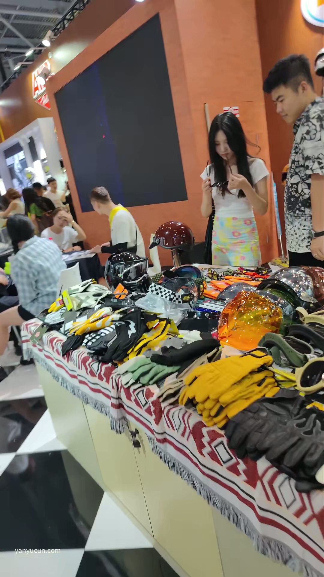 XM308极品美女穿着短裙和男朋友逛展会,蓝色内屁股半透明内
