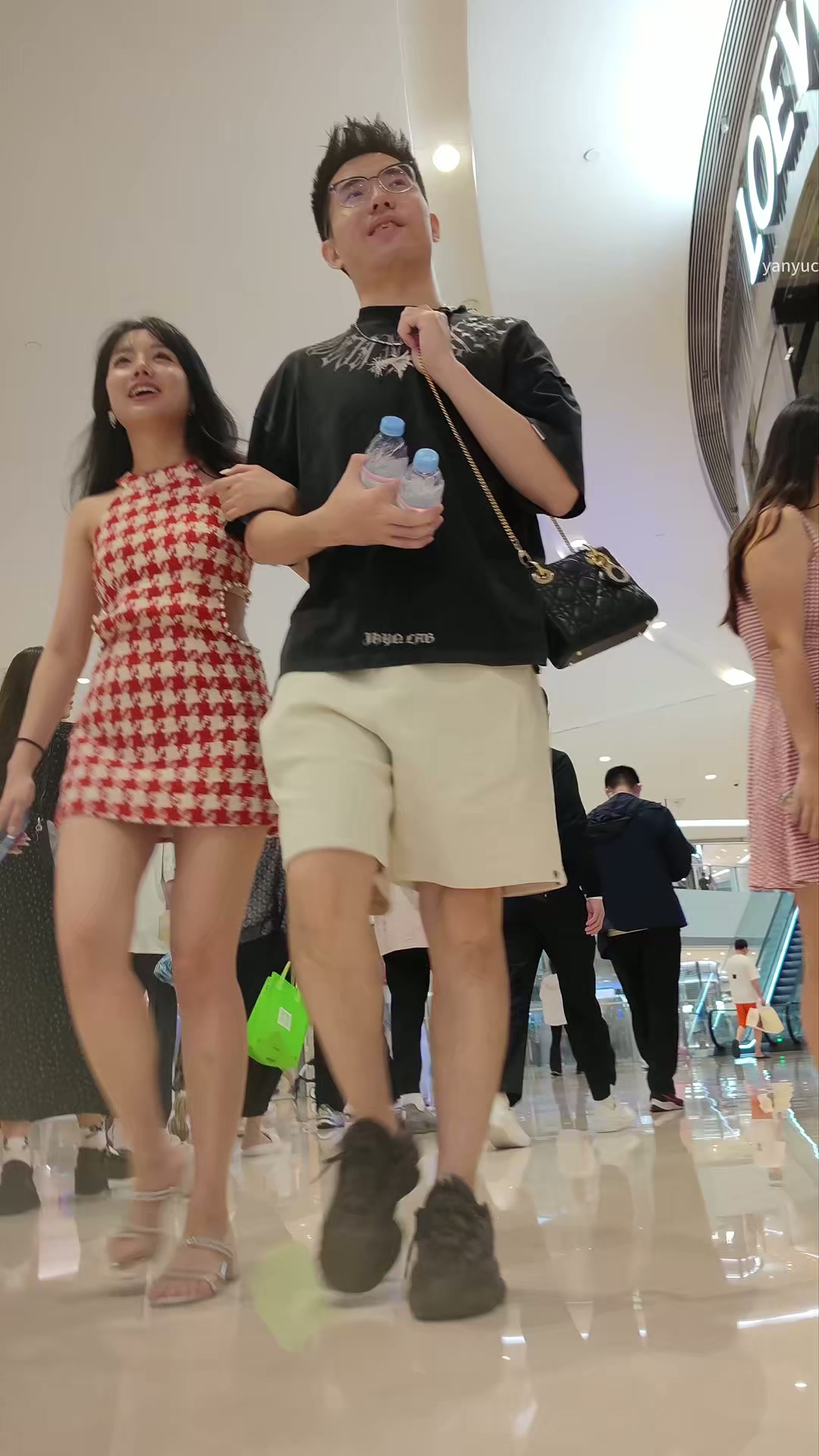 XM341红白连衣裙小姐姐和男朋友逛街,白色内内 341