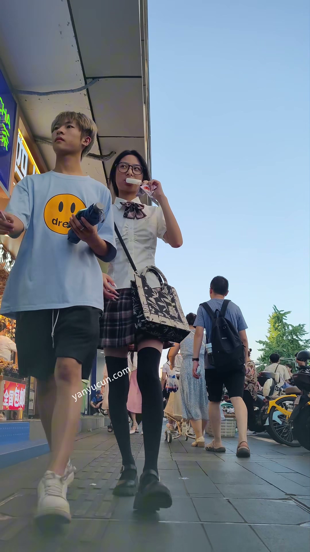 XM383黑色长腿袜JK小姐姐和男朋友逛街,白色内内 ...