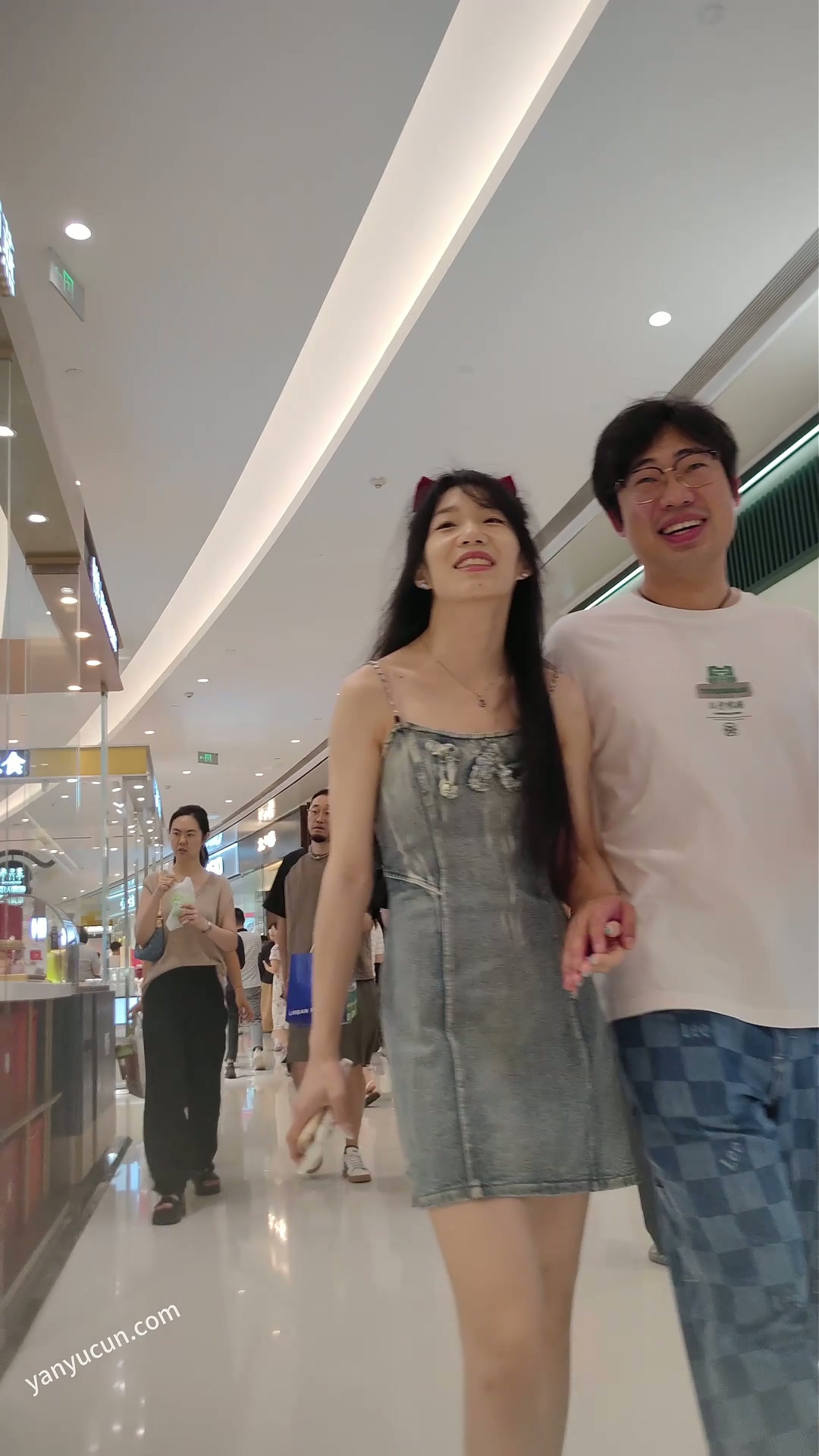 XM421蓝色牛仔连衣裙甜美小姐姐和男朋友逛街,蓝色内内