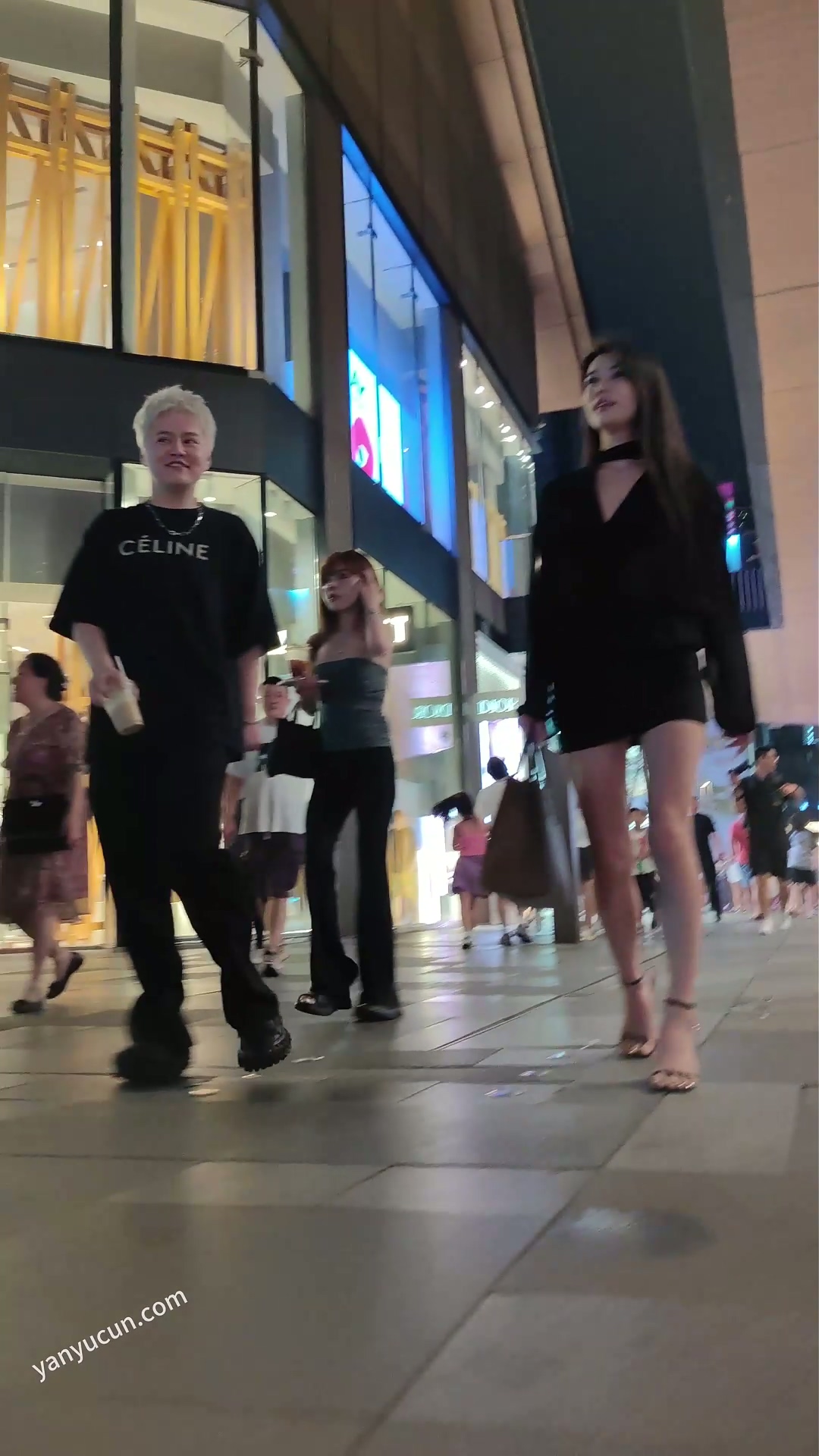 XM428黑色超短裙细带高跟鞋极品美女被街拍,白色内 428