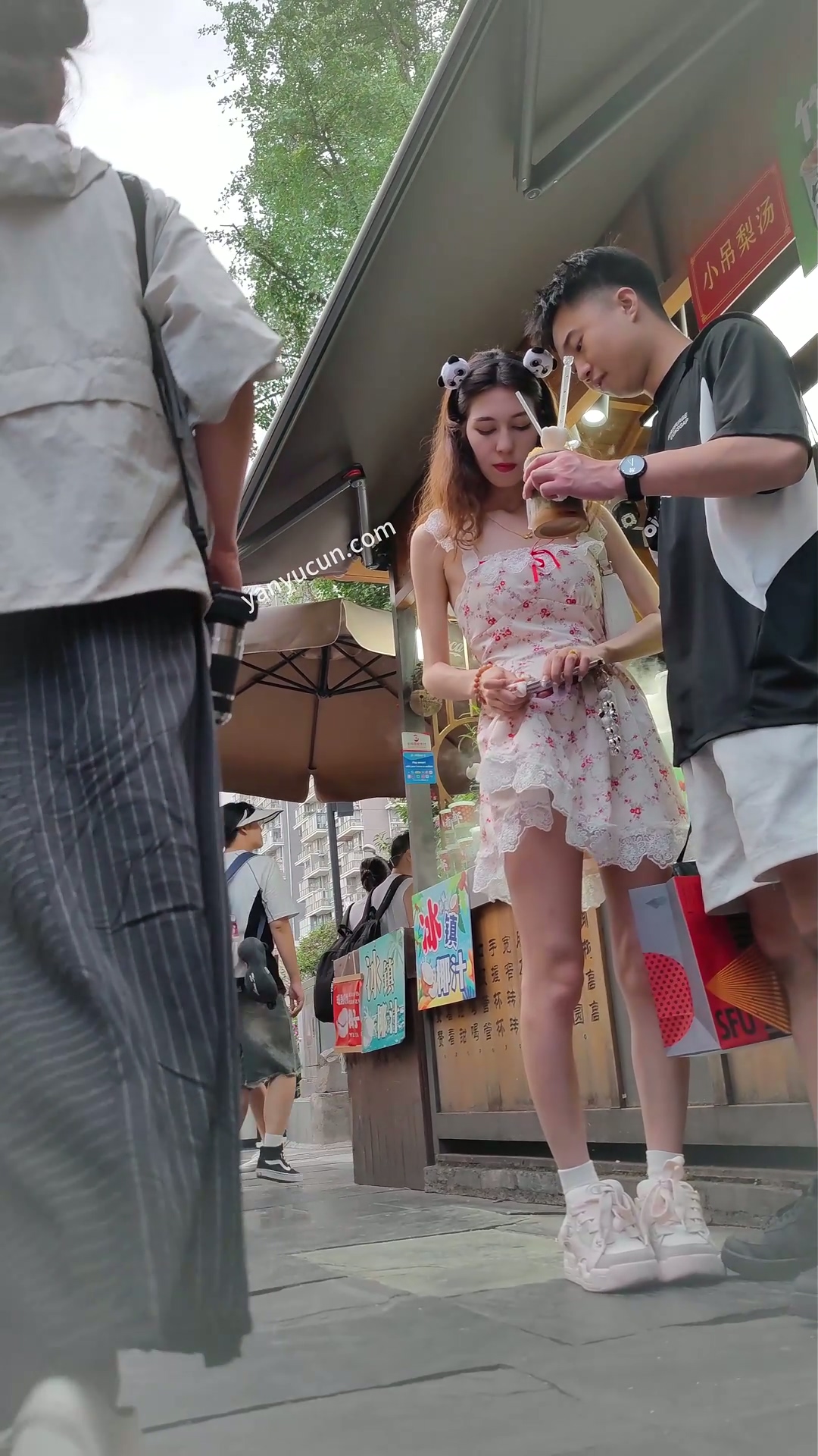 XM433白色印花连衣裙小姐姐和男朋友出来游玩,黑色内内 ...