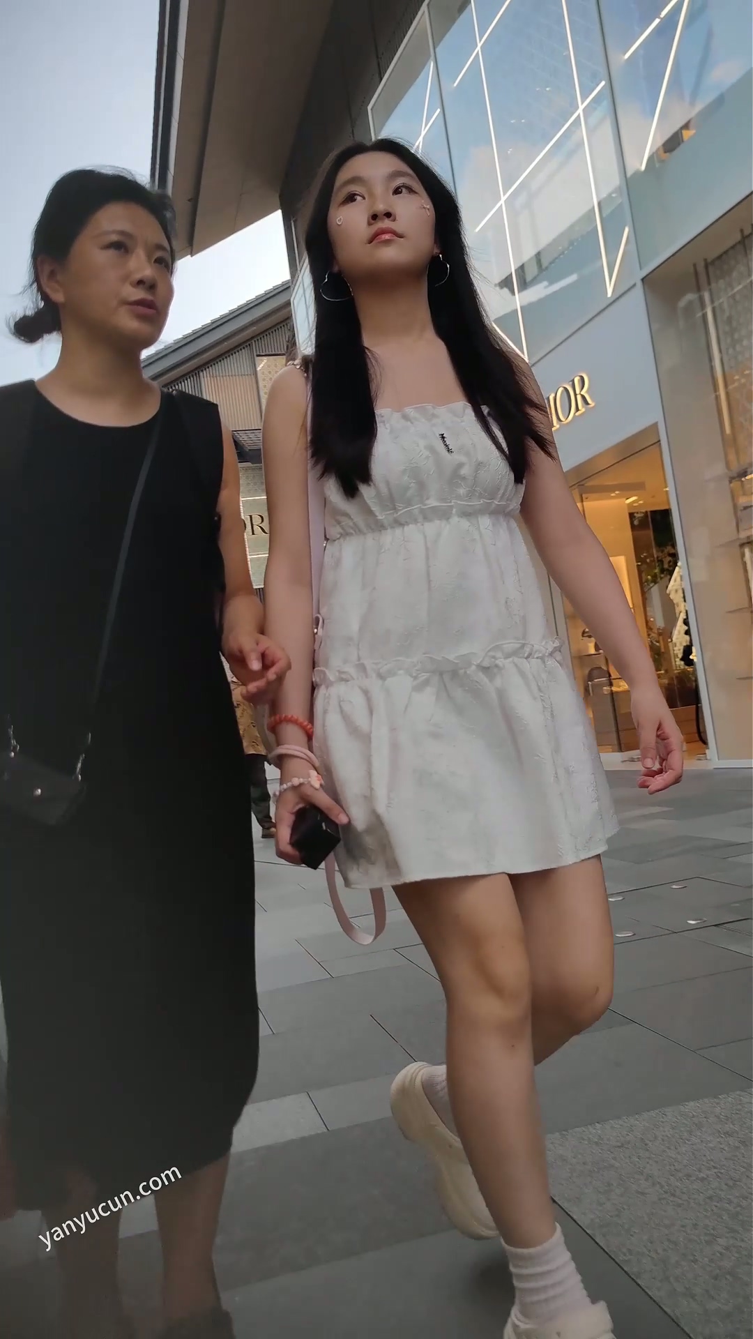 XM444白色连衣裙清纯小姐姐和妈妈逛街,前后抄底粉色窄 ...