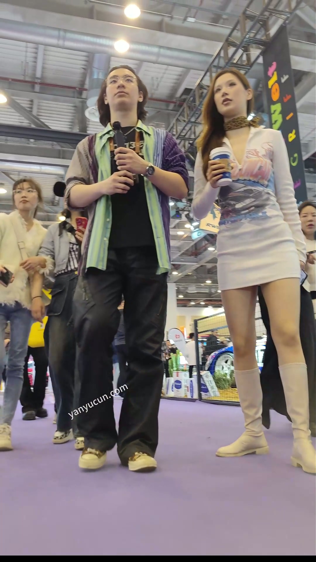 XM453白色包臀裙极品美女和男朋友逛展会,白色丁字裤漏毛