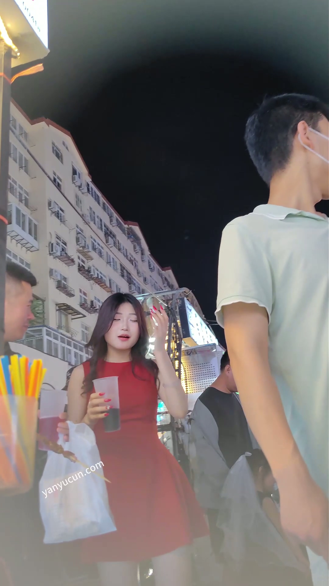 XM458红色连衣裙美女和男朋友逛夜市,白色内内 ...