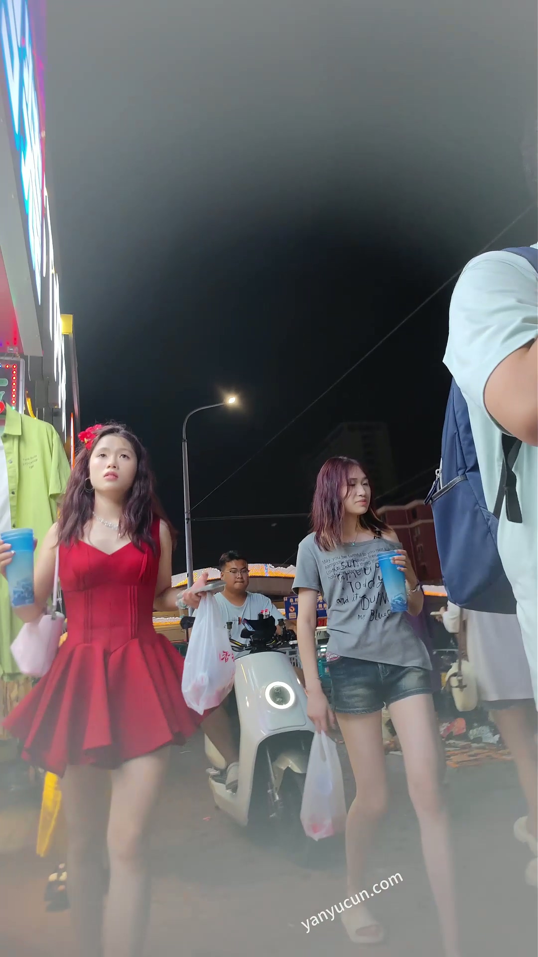 XM464红色连衣裙小姐姐和闺蜜逛夜市,白色内内