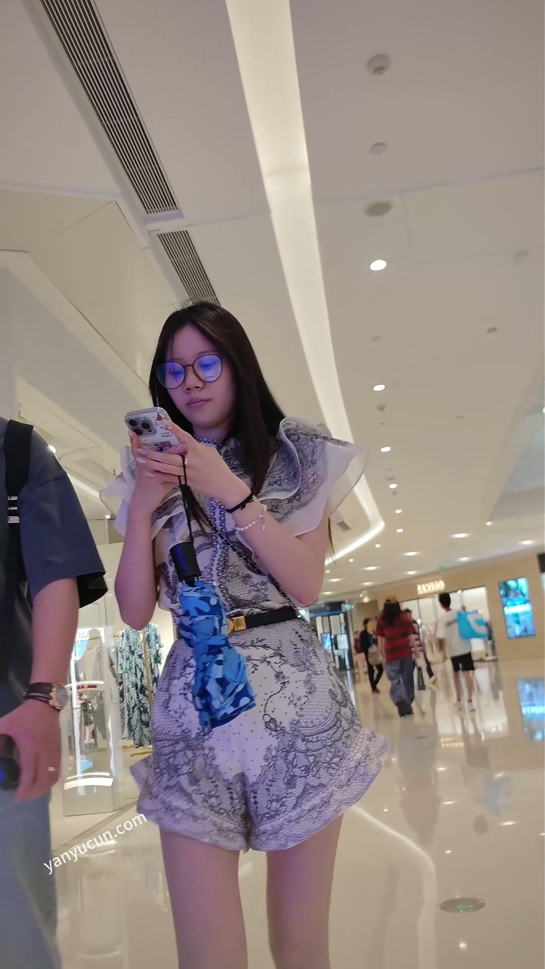 XM466白色超级宽松短裤小姐姐和男朋友逛街,白色窄内