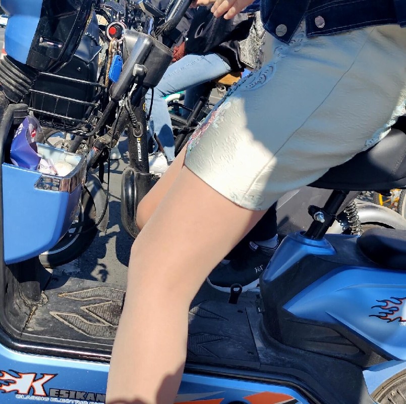 4k街拍骑电瓶车的高跟肉丝