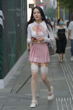 【YZWCD】YC417紫裙短发小姐姐逛街前后视觉!可爱花N!