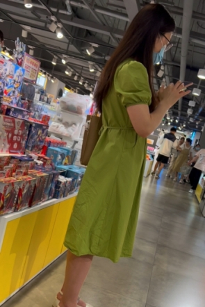 【XLBCD】101高冷气质美女绿色超短裙小蛮腰都漏出来