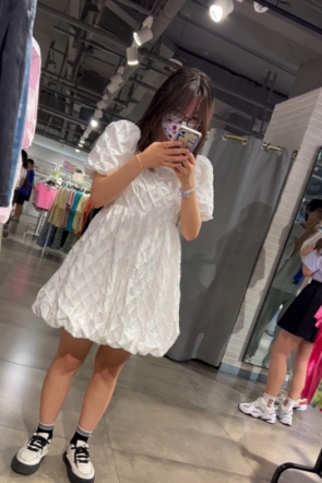 【XLBCD】137白色连衣裙非常有个性的小美女,白色黑条N