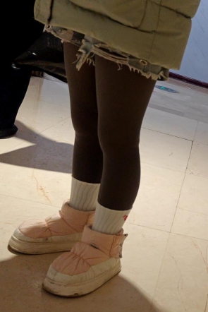 kc883和朋友逛街的可爱妹子,微透卡通N包裹翘臀