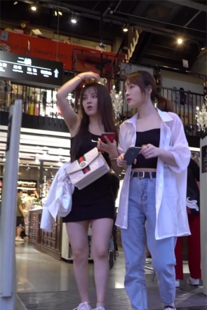 【YZWCD】YC534黑色紧身包臀裙和姐妹逛街!性感粉窄N!