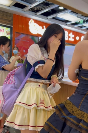 TK053原创CD 百褶裙眼镜妹子薄丝小蓝N,仙裙开伞