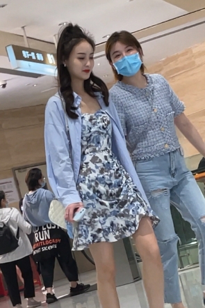 【XLBCD】577姐妹几个出来逛街,短裤牛仔短裙都是白N