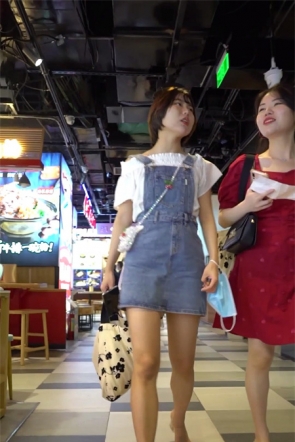 trump497【 KFC-350 】包臀短裙靓女和闺蜜。外套光腿漏出骚窄N