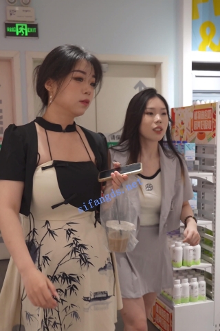 trump980【KFC】长裙靓女独自逛街买奶茶。淡蓝色点点内内超清CD