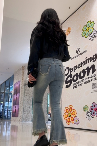 kc935连衣裙美少妇逛商场,干净微透粉N包裹肉臀