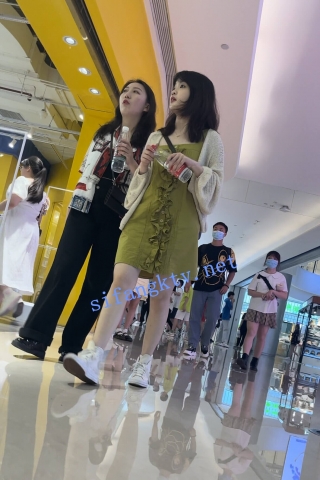 【KXCD】221绿色印花连衣裙小姐姐和男朋友逛街,白色NN