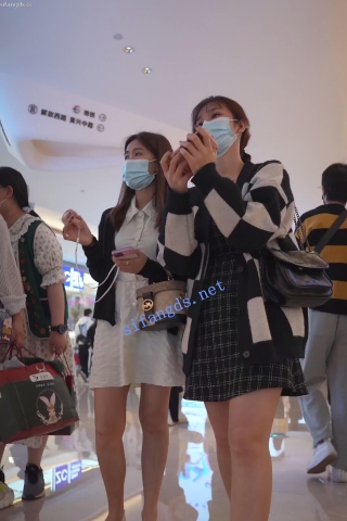 trump869【 KFC 】洛丽塔裙学生和闺蜜逛街拍照。白色过膝袜白色窄内