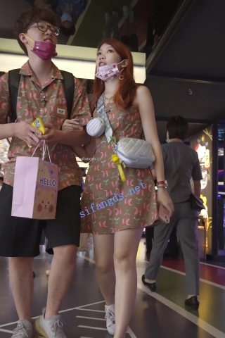【KXCD】449白色连衣裙小姐姐和闺蜜逛街,黄色内内