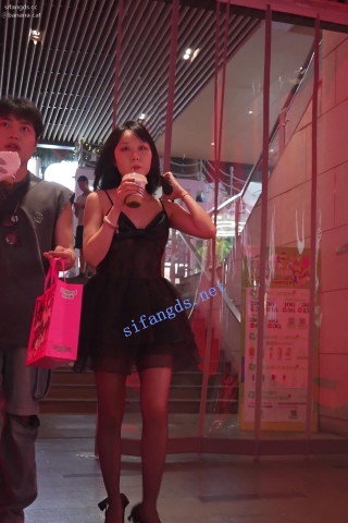 【KXCD】450黑色连衣裙小姐姐逛街买衣服,白色内内
