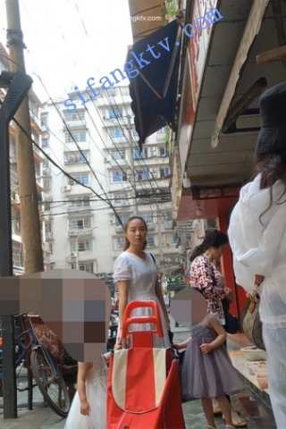 kc265(空城原创)和家人逛超市的美艳白裙少妇,穿着紫NN