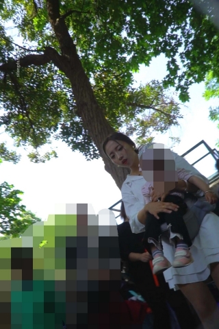 kc1438(空城原创)白裙美少妇带孩子玩,薄丝微透白N包裹肥臀